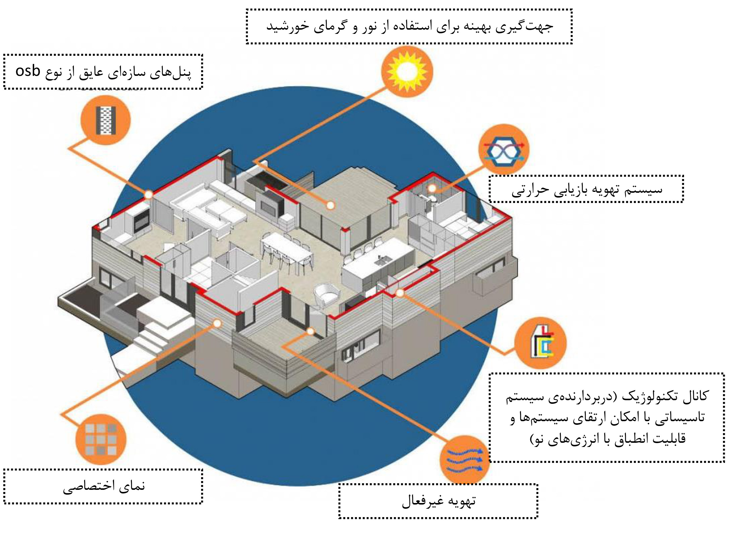 رویکرد گروه housebrand در طراحی پوستهی خانهها با مبانی معماری پایدار منطبق است. با کمک پنلهای عایق، تهویه غیرفعال، جهت گیری مناسب بنا و پوسته تنفسکننده، مصرف انرژیهای تجدیدناپذیر در این خانهها در مقایسه با خانههای متداول کمتر خواهد بود. از طرف دیگر با توجه به سرعت زیاد تغییرات تکنولوژیک و احتمال ایجاد نیازهای تاسیساتی جدید در آینده، این خانهها با پیشبینی کانال تاسیسات تکنولوژیک امکان استفاده از تجهیزات دنیای آینده را خواهند داشت.