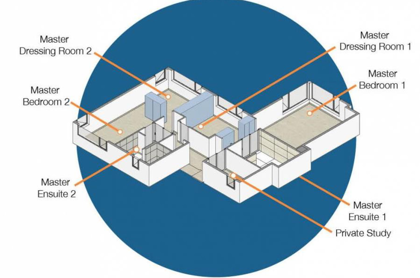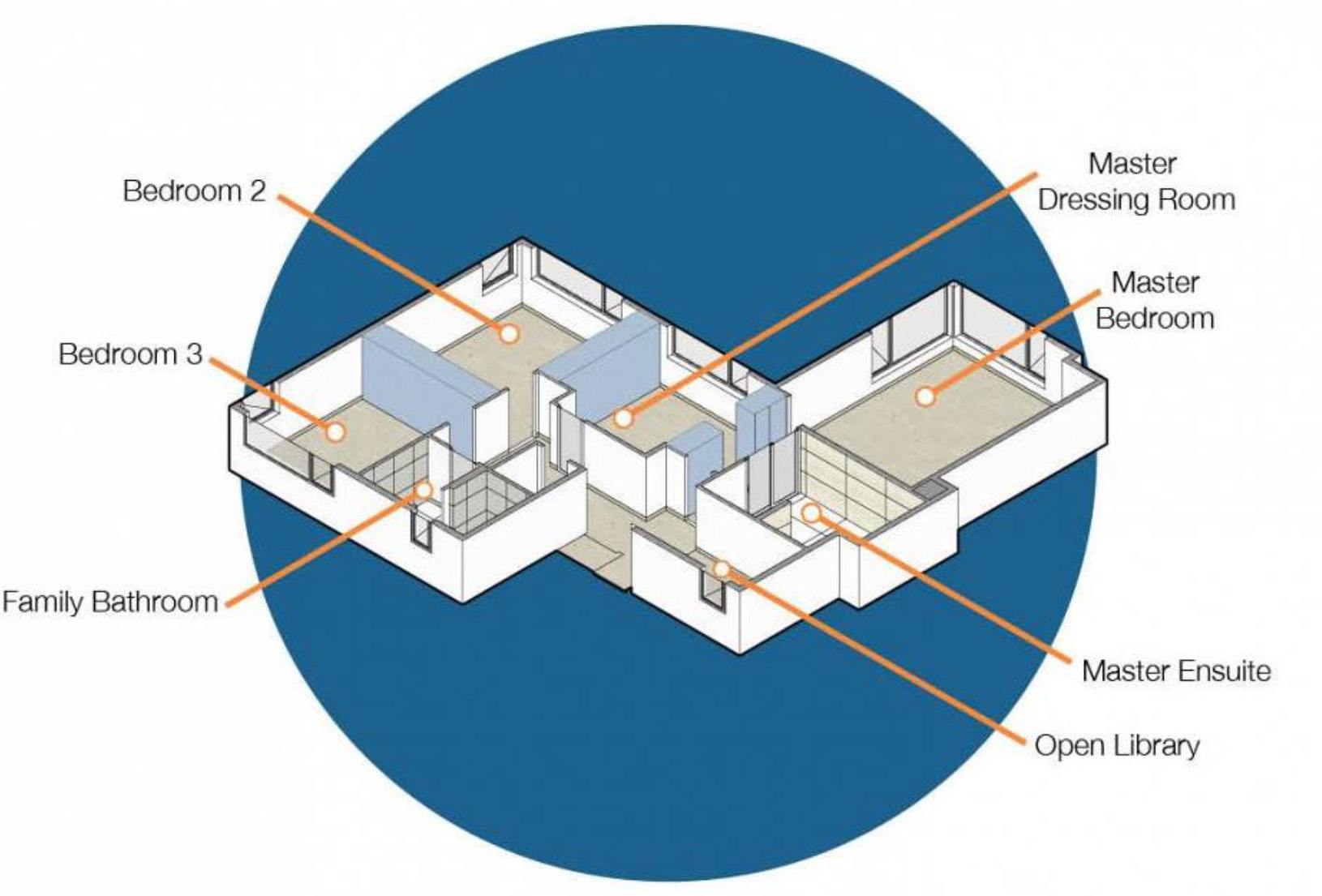 پلان اولیه: شامل سه اتاق خواب و یک اتاق لباس بزرگ برای اتاق مستر